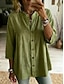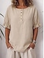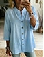 Femmes Chemisier Chemise en coton Uni ancien Élégant Manche 3/4 Col ras du cou Hauts Réguliers Quotidien Fête Sortir Bleu Jaune Rose Claire Gris Été Printemps