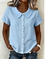 Femmes Coton mélangé Chemisier Boutons Uni Basique Moderne Occasionnel Manche Courte Col en V Hauts Réguliers Fête Sortir Blanche Rose Claire Vert Bleu clair Été