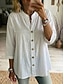 Femmes Chemise Boutonner Chemisier Faux coton lin Boutons Couleur Unie Basique Occasionnel Manche 3/4 Col en V Hauts Réguliers Quotidien Gris Été Printemps