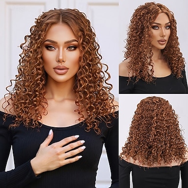 Perruque Synthétique Bouclé Tissage bouclé Coupe dégradée Avec frange Fabriqué à la Machine Perruque Long Brun claire Cheveux synthétiques Femmes Classique Confortable Exquis Marron