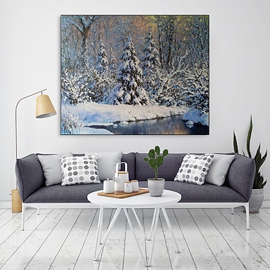 Peinture à l'huile faite à la main toile art mural décoration décoration de noël scène de neige pour la décoration intérieure roulé sans cadre peinture non étirée