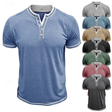 Homme Chemise Henley T-shirt Manche Courte Uni ancien Boutons Faux deux pièces Henley Extérieur Occasionnel Quotidien Été Printemps & Automne Gris foncé Noir Bleu Ciel T-shirt Henley