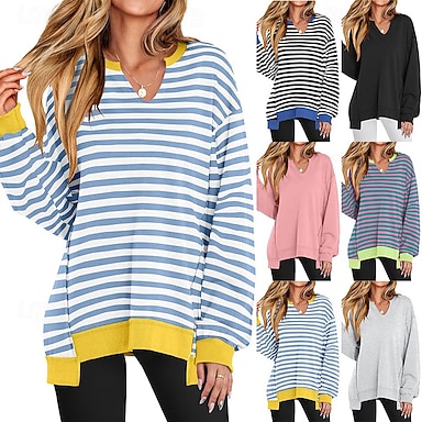 Femmes Sweat-shirt à enfiler Hauts décontractés manche longue Top Athleisure Col en V Rayé Doux Chaud Extérieur Vacances Tenue de sport Tenues de Sport Noir Rose Claire Bleu