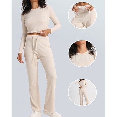 Femmes Ensemble Survetement Jogging Pantalon Vêtement de sport Couleur Unie Ensemble Vêtements Automne Noir Blanche Extérieur Voyage Sportif Taille haute manche longue Sport Tenues de Sport