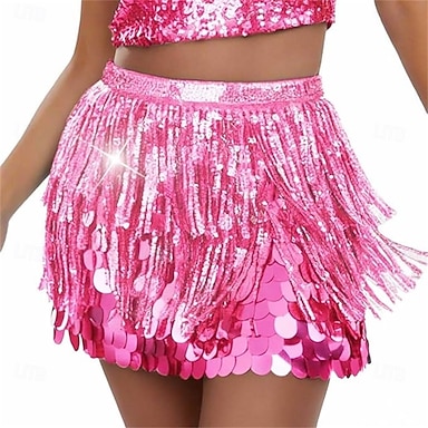 Samba Dancewear Mini-jupe à franges scintillantes en rose étincelant pour femmes - Tenue de club et fêtes rave costume de performance