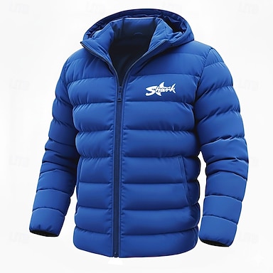 Homme Requin Imprimé Lettre Manteau d'Hiver Doudoune Chaleur Thermique Pluie Etanche Léger Occasionnel Extérieur Quotidien Veste matelassée à capuche Automne Hiver manche longue Noir Rouge Bleu Roi