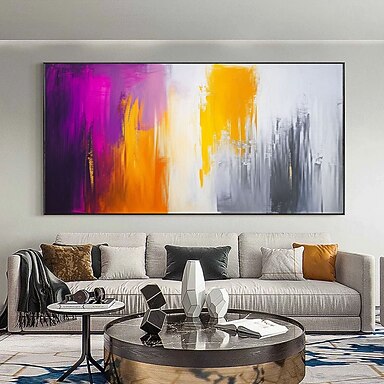 Peinture à l'huile faite main, art abstrait aux tons lumineux, grande toile acrylique, œuvre d'art moderne extra large, jaune et violet, pour la maison, cadeau personnalisé