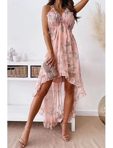 Femmes Robe Midi Robe trapèze Robe Nuisette Occasionnel Extérieur Sortir Coupe régulière Fleuri Sans manches Col Halter Rose Claire Été Printemps