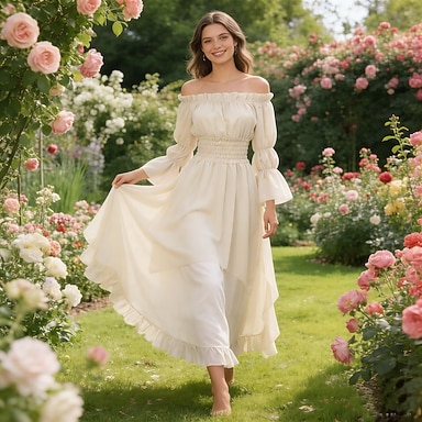 Ligne A Longueur cheville Robe d'invité de mariage Robes pour invités de mariage Élégant Quotidien manche longue Col haut Fête de jardin Mariage avec Volants À Bretelles