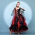 Robe de danse de salon pour femme, noire, rouge, flamme, broderie, volants, organza, tango, foxtrot, paso doble, compétition
