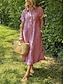 Femmes Robe Maxi Faux coton lin Robe fourreau Robe Décontractée Robe en Coton Mode Moderne Quotidien Week-end Coupe Ample Uni Manche Courte Col en V Bleu Rouge Chameau Violet Été Printemps