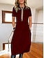 Femmes Robe Midi Faux coton lin Robe Décontractée Élégant Mode Moderne Extérieur Vacances Sortir Coupe régulière Uni manche longue Col ras du cou Bleu Blanche Rouge Bordeaux Marron Été Printemps