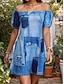 Femmes Mini Robe Robe d'Été Robe Décontractée Robe Imprimée Mode Moderne Extérieur Vacances Sortir Coupe régulière Bloc de Couleur Manche Courte Épaules Dénudées Rouge Bordeaux Bleu Roi Été Printemps