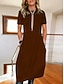 Femmes Robe Midi Robe trapèze Robe d'été Occasionnel Coupe Ample Uni Manche Courte Col en V Bleu Blanche Rouge Marron Été Printemps