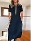 Femmes Robe Midi Robe trapèze Vacances Occasionnel Extérieur Sortir Coupe Ample Rayure Manche Courte Col Rabattu Bleu Blanche Rouge Violet Été Printemps Automne