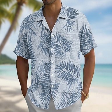 Homme Cocotier Plantes Tropicales Chemise hawaïenne Chemise Boutonnée Chemise Aloha Manche Courte Hawaïen Vacances Tenue de plage Été Printemps Col Rabattu Impression 3D chemises à col Bleu Vert Kaki