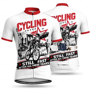 Hommes Maillot de cyclisme Maillot de descente Mot / Phrase VIEIL HOMME À VÉLO Manche Courte Cyclisme T-shirt avec 3 poches arrière Résistant aux UV Séchage Rapide Avec Poches Fermeture Éclair