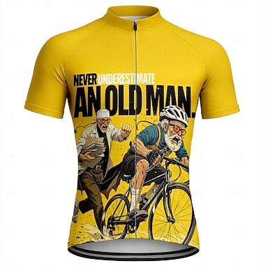 Hommes Maillot de cyclisme Maillot de descente Ne sous-estimez jamais un vieil homme à vélo. Manche Courte Cyclisme T-shirt avec 3 poches arrière Résistant aux UV Séchage Rapide Avec Poches Fermeture