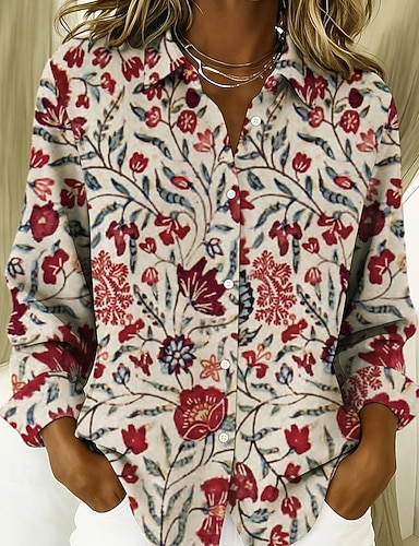 Femmes Chemisier Imprimé Fleuri Graphique Vacances ancien Quotidien manche longue Col de chemise Hauts Réguliers Quotidien Extérieur Fête Vert Été Printemps Automne