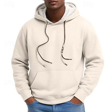 Homme Sweat à capuche Sweat à capuche en polaire Sweat à capuche doublé en polaire Noir Rouge Gris Clair Gris foncé Beige À capuche Uni Poche kangourou Occasionnel Quotidien Sport & Loisir Streetwear
