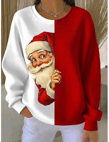 Sweatshirt Pullover pour Femmes de Noël Graphique Claus Décontracté Manches Longues Col Rond Hauts Réguliers Mode de Rue Décontracté Rouge Bleu Vert Automne Hiver