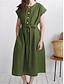 Femmes Robe Midi Faux coton lin Robe fourreau Robe Décontractée Mode Basique Moderne Quotidien Extérieur Vacances Coupe régulière Uni Manche Courte Col ras du cou Bleu Vert Véronèse Rouge Kaki Ét