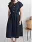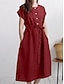 Femmes Robe Midi Faux coton lin Robe fourreau Robe Décontractée Mode Basique Moderne Quotidien Extérieur Vacances Coupe régulière Uni Manche Courte Col ras du cou Rouge bleu marine Vert Gris Ét