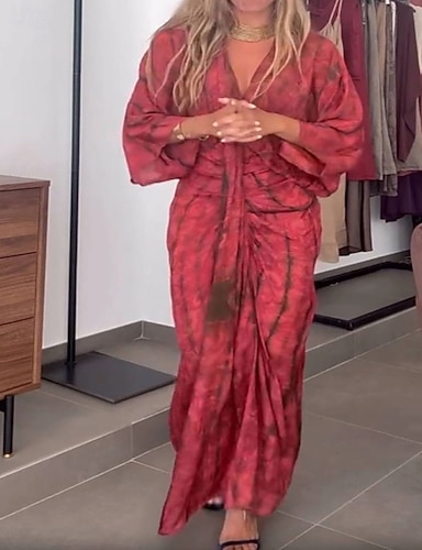 Ligne A Longueur au sol Robe de Soirée Tenue de soirée Élégant La mère de la mariée Sans manches Col en V Fête de jardin Formel Poche Satin avec Imprimé floral Plis Poche