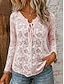 Femmes Chemise Coton mélangé Chemisier Dentelle Patchwork Couleur Unie Basique Occasionnel Manche 3/4 Col ras du cou Hauts Réguliers Quotidien Rose pâle Noir Jaune Rose Claire Vert Été