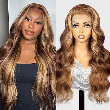 Perruques en cheveux humains avec dentelle frontale 13x4 marron ombré p4/27, mèches ondulées lâches et profondes, densité 150 % pour femmes noires