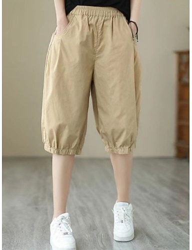 Femmes Faux coton lin Joggings Chinos Vacances Mode Streetwear Longueur Genou Taille haute Uni Avec Poches Ceinture Élastique Confortable Doux Respirant Élastique Extérieur Rue Vert foncé Noir Vert