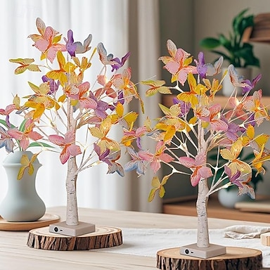 Guirlande lumineuse LED papillon simulant un bouleau, 60 cm, 24 LED, alimentée par piles AAA et USB, double usage intérieur (printemps et été), chambre, tête de lit, salon, salle à manger, fête,