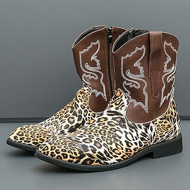 Homme Bottes Bottes de Cowboy Broderie Imprimé Animal Marche Occasionnel Extérieur Quotidien Cuir PU Confortable Antidérapant Respirant Bottines Fermeture éclair Noir Marron Été Printemps Automne