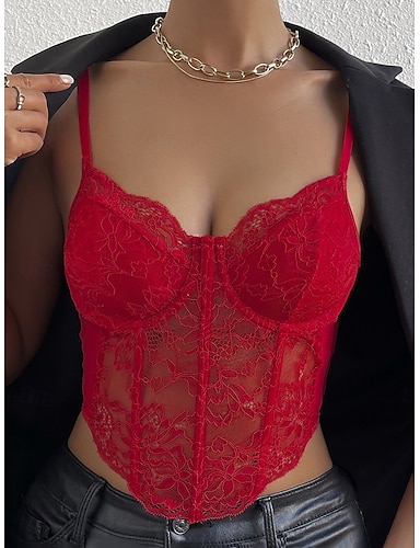Femmes Lingerie sexy Gaine Sculptante Chaud Sexy Transparent Couleur Unie Dentelle Tulle Maison Club Saint-Valentin Sans manches Bretelles Blanche Rose Claire Rouge Vert Été Printemps Coupe Slim