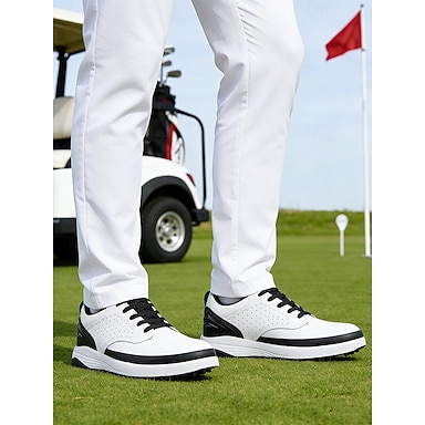 Chaussures de golf classiques noires et blanches pour hommes avec tige en similicuir - design polyvalent pour le golf et les vêtements décontractés