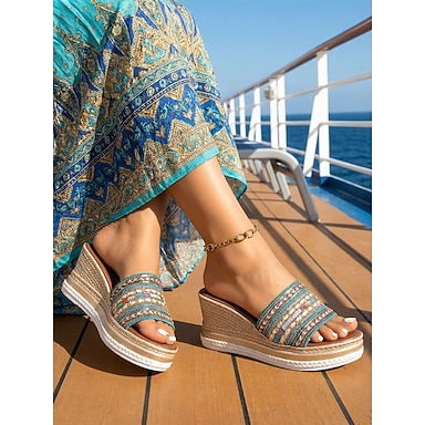 Sandales compensées en denim bleu pour femmes – mules décontractées à lacets avec semelle plateforme, idéales pour les voyages d'été, les promenades et le quotidien.
