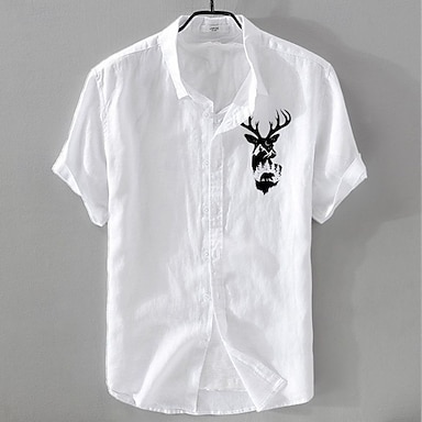 Homme Chemise en lin Chemise Décontractée Chemise en coton et lin Chemise Boutonnée À Motif Animal Vacances Tenue quotidienne Blanche Marine foncé Bleu Ciel Kaki Manche Courte Revers Toutes saisons