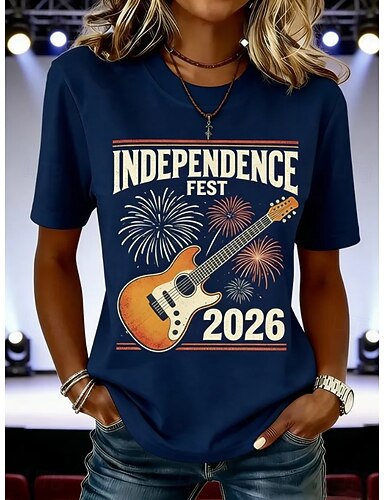 Festival de musique Femmes T-shirt Imprimé Graphique Lettre Musique ancien Élégant Classique Manche Courte Col ras du cou Hauts Longs Quotidien Week-end bleu marine Été Printemps