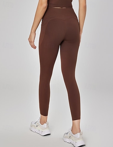 Femmes Pantalons de fitness Pantalons de Pilates Pantalon de yoga avec poches Léger Taille haute Salle de sport Pilates Zumba Bas Couleur Unie Rose Café Automne Des sports Tenues de Sport
