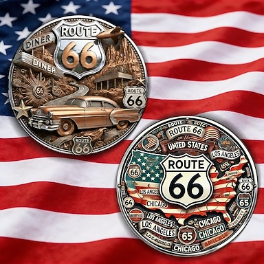 Pièce commémorative Route 66 – 100 ans de liberté, pièce souvenir de collection, cadeau vintage sur les routes américaines, motif moto et voiture classique, souvenir du centenaire