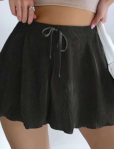 Femmes Shorts Shorts d'été Shorts de plage Vacances Mode Décontracté Quotidien Court Taille haute Couleur Unie Uni Cordon de serrage in in france they say Pontalon wide leg Ceinture Élastique Confort