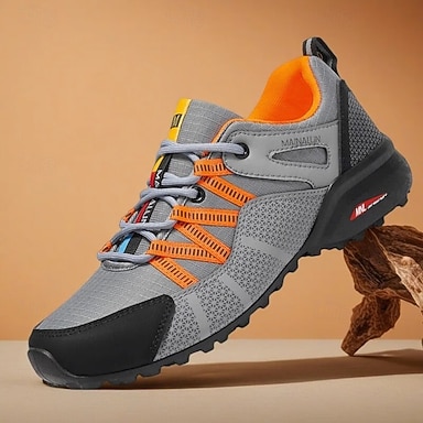 Baskets de sport grises et orange pour homme, chaussures de course et d'extérieur légères, idéales pour le fitness, la course à pied et un usage quotidien décontracté, confortables et élégantes.