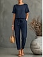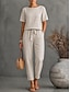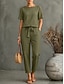 Femmes T-shirt Faux coton lin Demi Manches Pantalon Long Col ras du cou Couleur Unie Avec Poches Mode Simple Occasionnel Rue Date Aéroport Vert Véronèse Orange Kaki Été