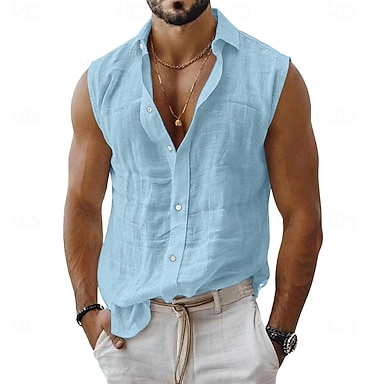 Homme Chemise Chemise en lin Chemise d'été Tenue de plage Chemise Boutonnée Uni Occasionnel Quotidien Noir Blanche Rose Claire Vert manche longue Col Été Printemps & Été Vêtement Tenue