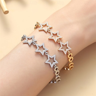 Bracelet Classique Zircon Etoile ancien Mode Personnalisé Tendance Bracelet Bijoux Argent Doré Géométrique pour Mariage Soirée Fiançailles Bal de promo