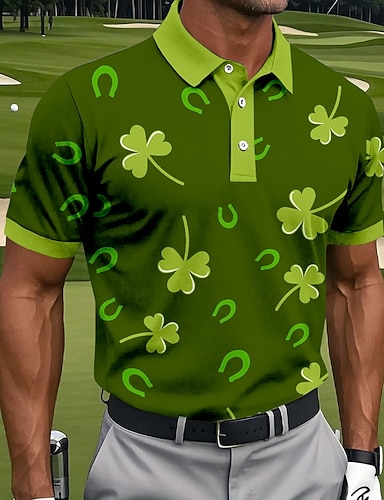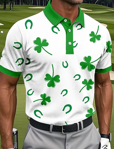 La Saint-Patrick Homme Trèfle Polo Manche Courte Polos Chemises à Col Occasionnel Extérieur Athleisure Fête Avec Poches Impression 3D Polo à fermeture éclair 1/4 Printemps & Été Noir