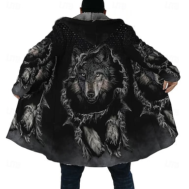 Homme À Motif Animal Manteau d'Hiver Veste en Polaire Manteau Chaleur Thermique Confortable Occasionnel Tenue quotidienne Fermeture éclair Avec Poches Impression 3D Automne Hiver À capuche manche
