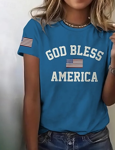 Jour de l'Indépendance T-shirt Patriotique Femme Imprimé Graphique Lettre Élégant Classique Décontracté À Manches Courtes Col Ronde Hauts Quotidiens Bleu Noir Blanc Rouge Été Printemps