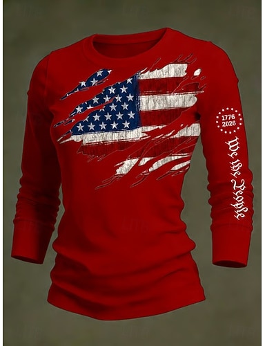 Jour de l'Indépendance Américaine Femmes T-shirt Imprimé Graphique Jour de l'Indépendance ancien Mode Élégant manche longue Col ras du cou Col rond Hauts Réguliers Quotidien Bleu Noir Blanche Rouge