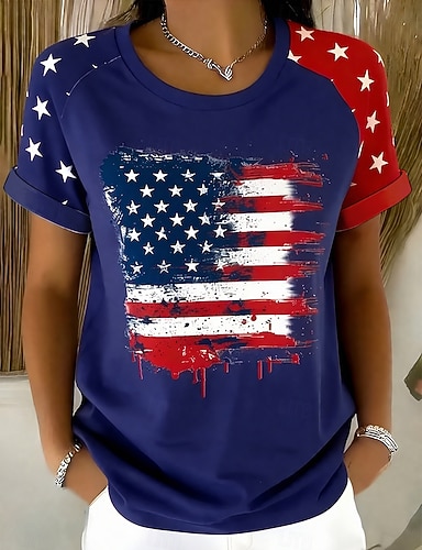 Jour de l'Indépendance Américaine Femmes T-shirt Imprimé Graphique Drapeau Drapeau Américain Élégant Classique Occasionnel Manche Courte Col ras du cou Hauts Réguliers Quotidien Blanche bleu marine